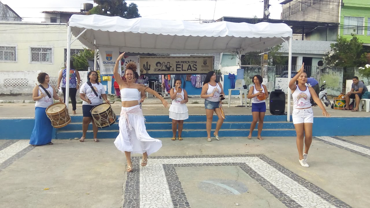 Realizada pela Secretaria Executiva da Mulher e Direitos Humanos e da Coordenadoria da Mulher, a tarde teve uma programação bem extensa. No local, houve aula de zumba, além de apresentações de grupos de dança de todas as idades. A cantora olindense Leide do Banjo também fez uma apresentação no local.