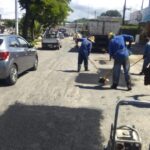 O mutirão de serviços do Projeto Arrumando a Casa, nesta quinta-feira (17.06), nos dois lados da Avenida Chico Science, nos Bultrins, terá sequência na sexta (18). No primeiro, foram realizadas ações como poda, tapa-buracos, limpeza de drenagem, capinação, limpeza e pintura de meio-fio.