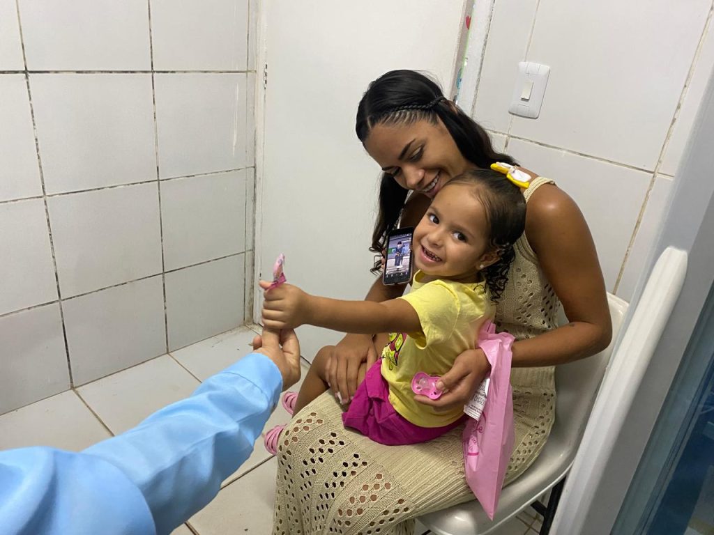 Entre as famílias atendidas, Rayza Lilliane levou a pequena Liz Manoela para se vacinar e também aproveitou para tomar a dose contra a gripe.