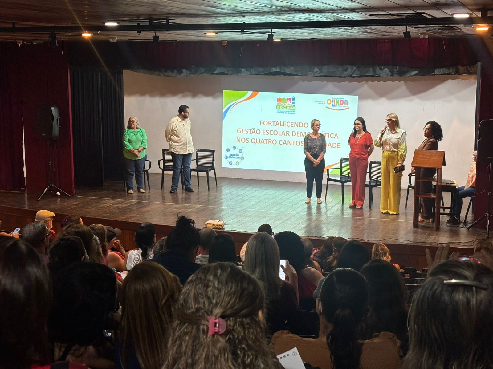 Diretores e conselheiros escolares de Olinda, de diversos segmentos, participaram  de mais uma Formação Continuada, promovida pela Secretaria Municipal de Educação. O encontro, realizado nesta quinta-feira (26), no Auditório do Colégio São Bento, no bairro do Carmo, acontece periodicamente em formatos diversos e, nesta edição, abordou o tema: Fortalecendo a Gestão Escolar Democrática nos Quatro Cantos da Cidade.