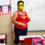 Ao entrar na sala de aula do quinto ano A, a professora Maria da Paz hoje foi a Mulher Maravilha. Em frente à lousa, a professora revela que seu principal poder é a persistência. “A persistência de fazer o impossível, vencer os obstáculos para se desenvolver um bom trabalho de um ano atípico, protegendo todas as nossas crianças deste prejuízo da pandemia”. A Evely Vitória, 11, estudante da professora Maria da Paz, afirma que tem uma guerreira em sala de aula. “Minha professora é muito inteligente e se preocupa com a gente”.
