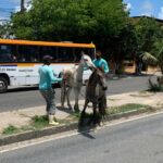 A Prefeitura de Olinda segue com o serviço de recolhimento de animais de médio e grande porte, abandonados irregularmente nas vias públicas. Nesta terça-feira (09.02), foram apreendidos mais três cavalos, que estavam soltos nas imediações da Avenida Pan Nordestina, no bairro do Guadalupe; além da Rua São Miguel, no Amaro Branco. Ambos foram recolhidos para a base, localizada no bairro de Ouro Preto, na Zona Rural do município.