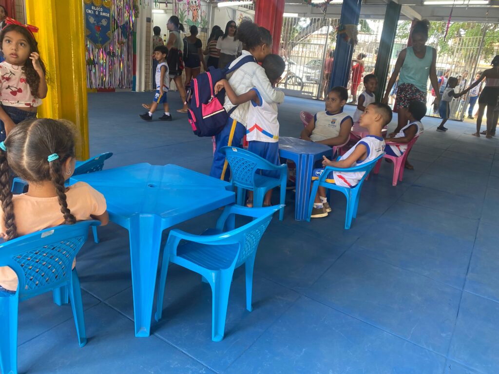 Alunos aguardam início do primeiro de dia aula Escola Municipal CAIC Profª Norma Coelho – integral. Créditos: Letícia Freitas.