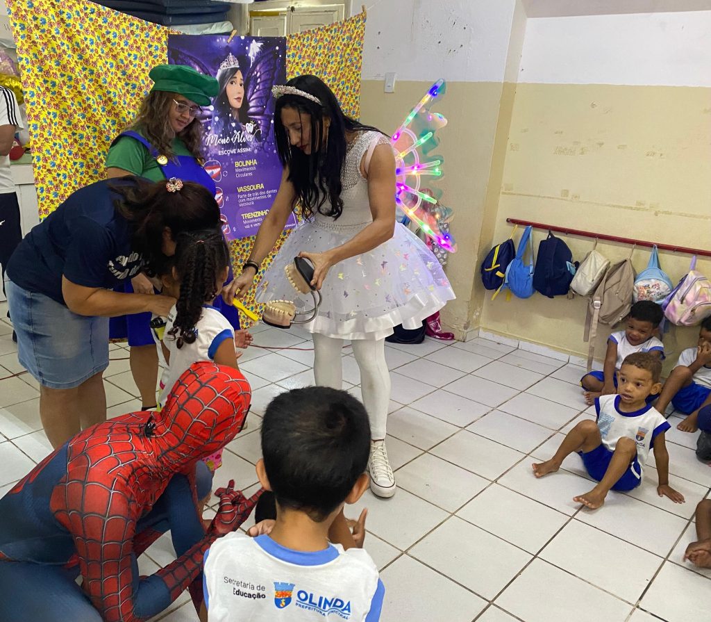 A Creche Municipal Emanuel, localizada no bairro do Amaro Branco, recebeu, na manhã desta quinta-feira (4), a Turma do Sorriso para uma ação de promoção da saúde bucal com crianças da primeira infância. A atividade contou com limpeza, aplicação de flúor, escovação guiada e uma peça teatral com personagens como a Fada do Dente e o Homem-Aranha, usada para reforçar o conteúdo de forma lúdica.