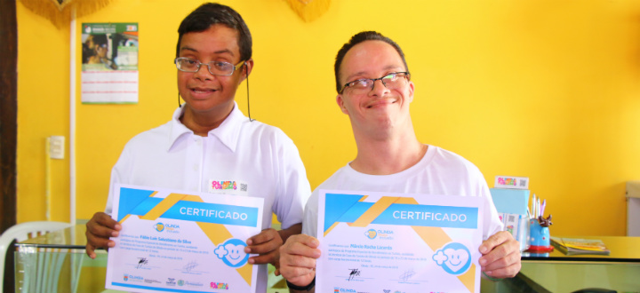 Jovens com Síndrome de Down receberam, na manhã desta sexta-feira (23.03), o certificado de participação no programa Olinda Mais Inclusão. O trabalho foi realizado, de 20 a 23 de março, na Casa do Turista, localizada no Sítio Histórico, reafirmando a necessidade de luta por direitos iguais, bem-estar e a devida inclusão na sociedade. Os participantes atuaram no atendimento ao público, sendo monitorados de perto por profissionais. A iniciativa promoveu a capacitação para o trade turístico e a ambientação para o mercado de trabalho.