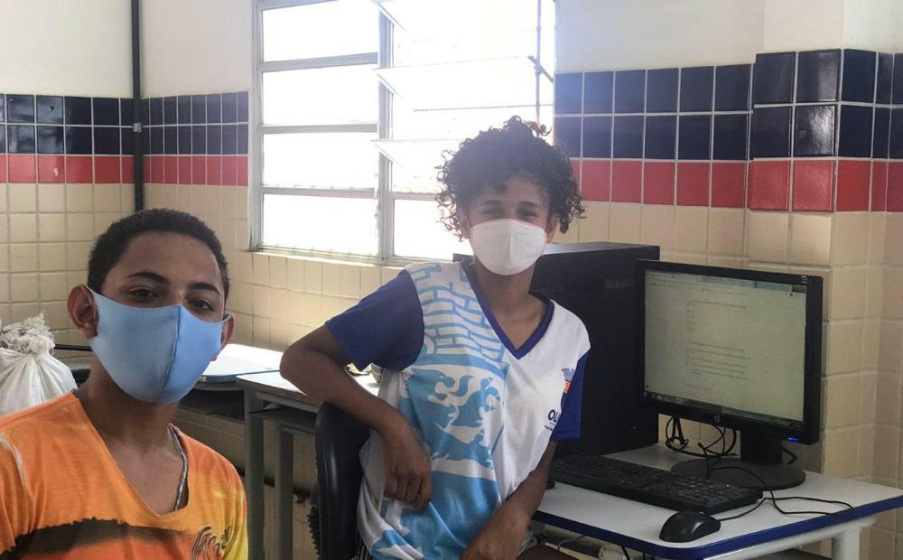 É assim na rotina de Wendson Vieira e João Victor da Silva, ambos 17 anos e ex-alunos da escola. Eles vêm desenvolvendo um trabalho espontâneo, ajudando a inserir os estudantes nas plataformas digitais de tecnologia, como o Whatsapp, o sistema dteolinda e o Google Classroom. Os garotos também auxiliam no preenchimento das planilhas de aulas remotas, durante esta fase de pandemia. A proposta vem ganhando adeptos cada vez mais. Por dia, a dupla de voluntários atende, cada um, até cinco estudantes, previamente agendados na escola.