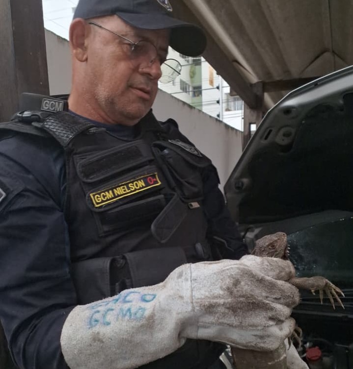 Ao chegar ao local, a equipe constatou que a iguana, que estava aparentemente saudável, havia se abrigado no compartimento do motor de um automóvel estacionado. Diante da situação de risco, os guardas utilizaram técnicas adequadas e procedimentos seguros para acessar o veículo e realizar o resgate sem causar ferimentos ao animal.