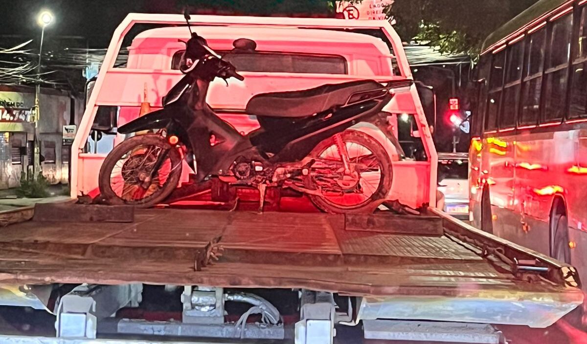 Diante da situação, foi solicitado apoio do órgão de trânsito municipal para o encaminhamento do ciclomotor à Delegacia de Polícia do Varadouro, onde foram adotadas as medidas cabíveis.
