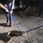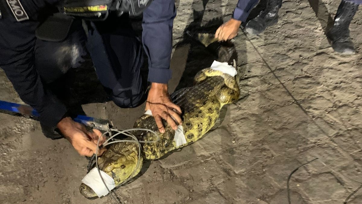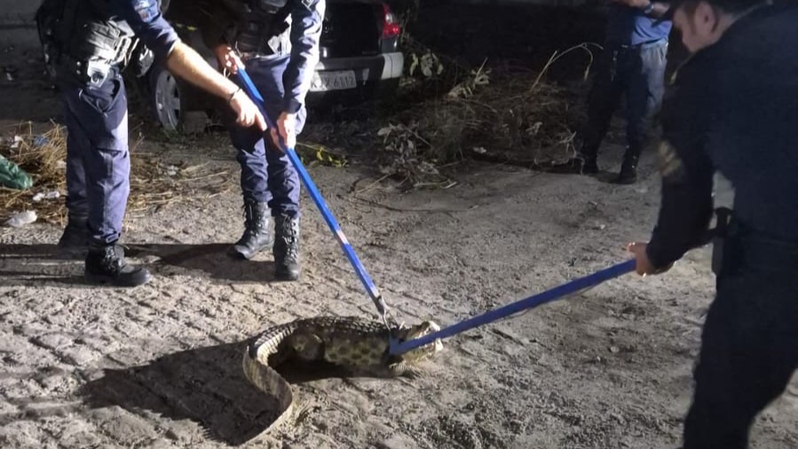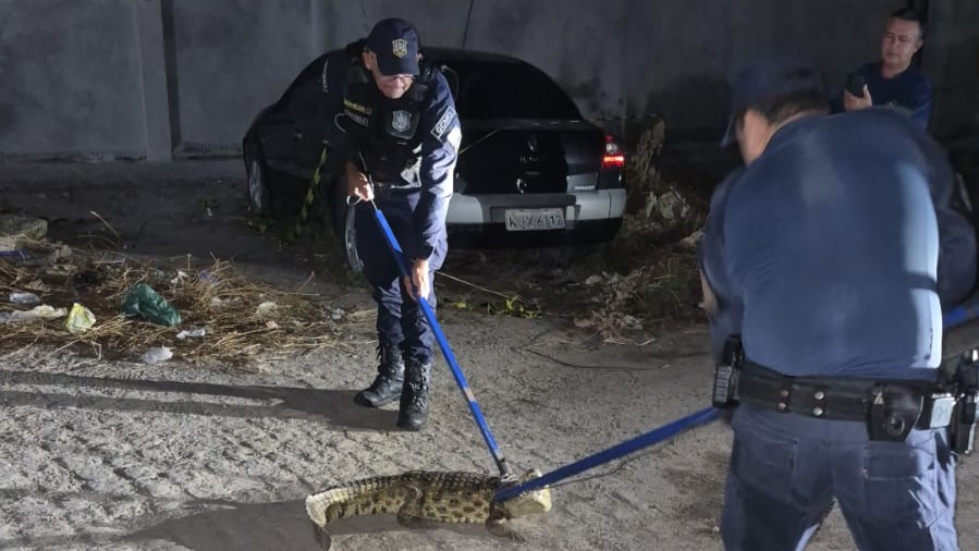 A área foi isolada e o jacaré contido com segurança, utilizando equipamentos específicos para o manejo de répteis de grande porte, seguindo todos os protocolos técnicos. O animal foi imobilizado sem intercorrências e acondicionado em caixa de transporte apropriada.