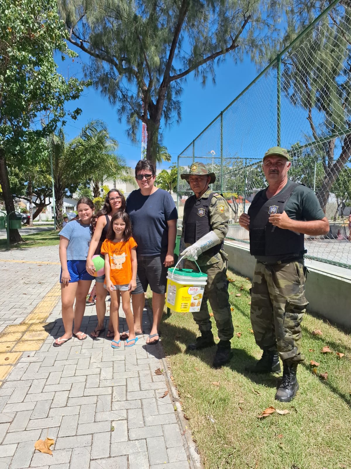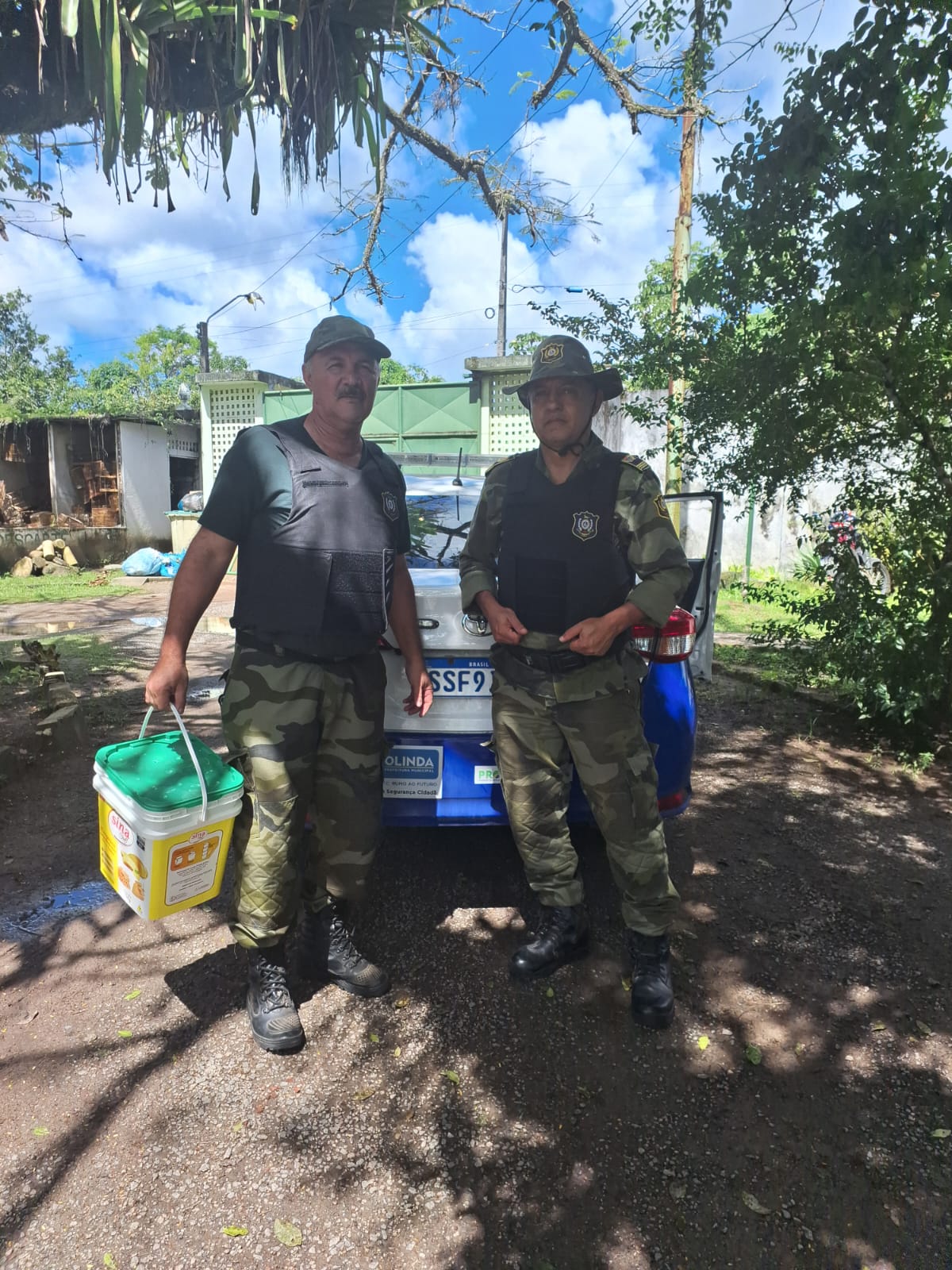 O chamado foi feito por populares que frequentavam o local e acionaram a Central de Atendimento da Guarda pelo telefone 153. Prontamente, uma equipe do Grupamento Ambiental da Cidade de Olinda (GACO) se deslocou até o ponto indicado e encontrou os animais – uma fêmea adulta acompanhada de seus seis filhotes – recolhidos no recipiente de lixo, possivelmente em busca de abrigo ou alimento.