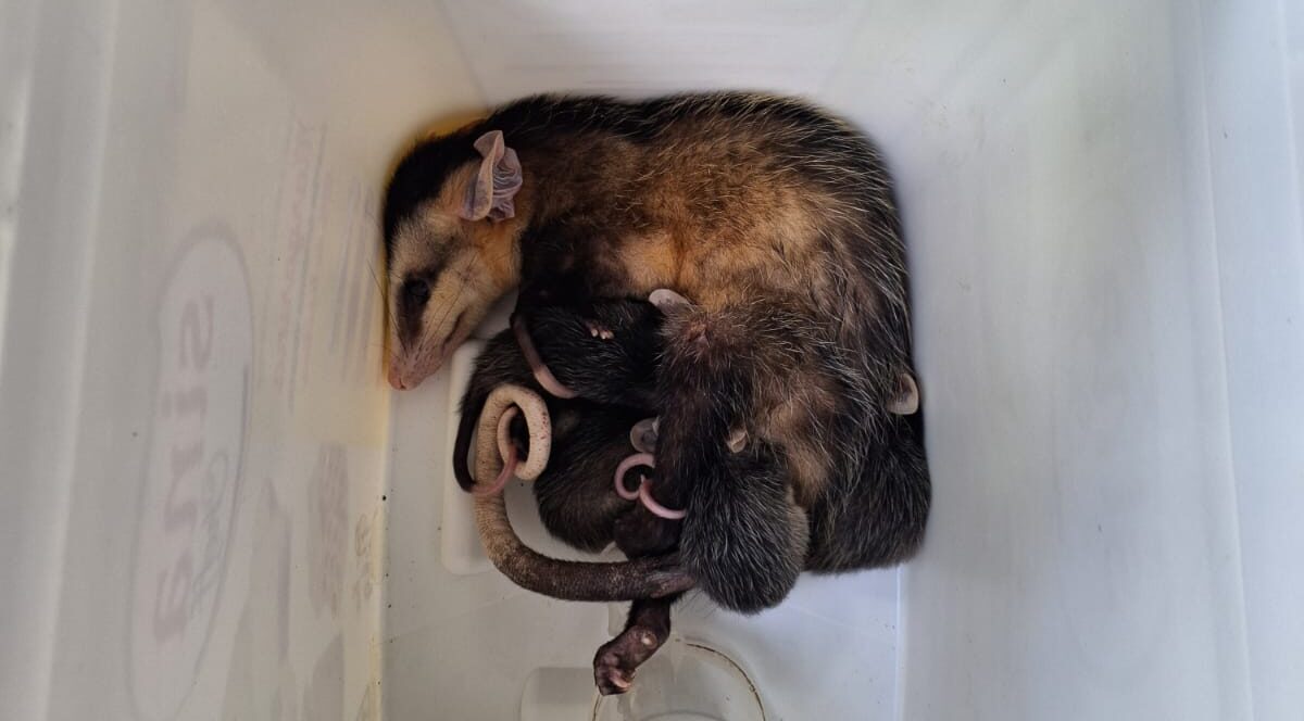 A família de marsupiais foi resgatada com segurança e transportada para o CETRAS Tangará (Centro de Triagem de Animais Silvestres), onde receberá os cuidados necessários antes de ser reintegrada de forma adequada ao seu habitat natural. Esse processo envolve avaliação clínica, observação do comportamento e garantia de que os animais estejam em condições de sobrevivência na natureza.