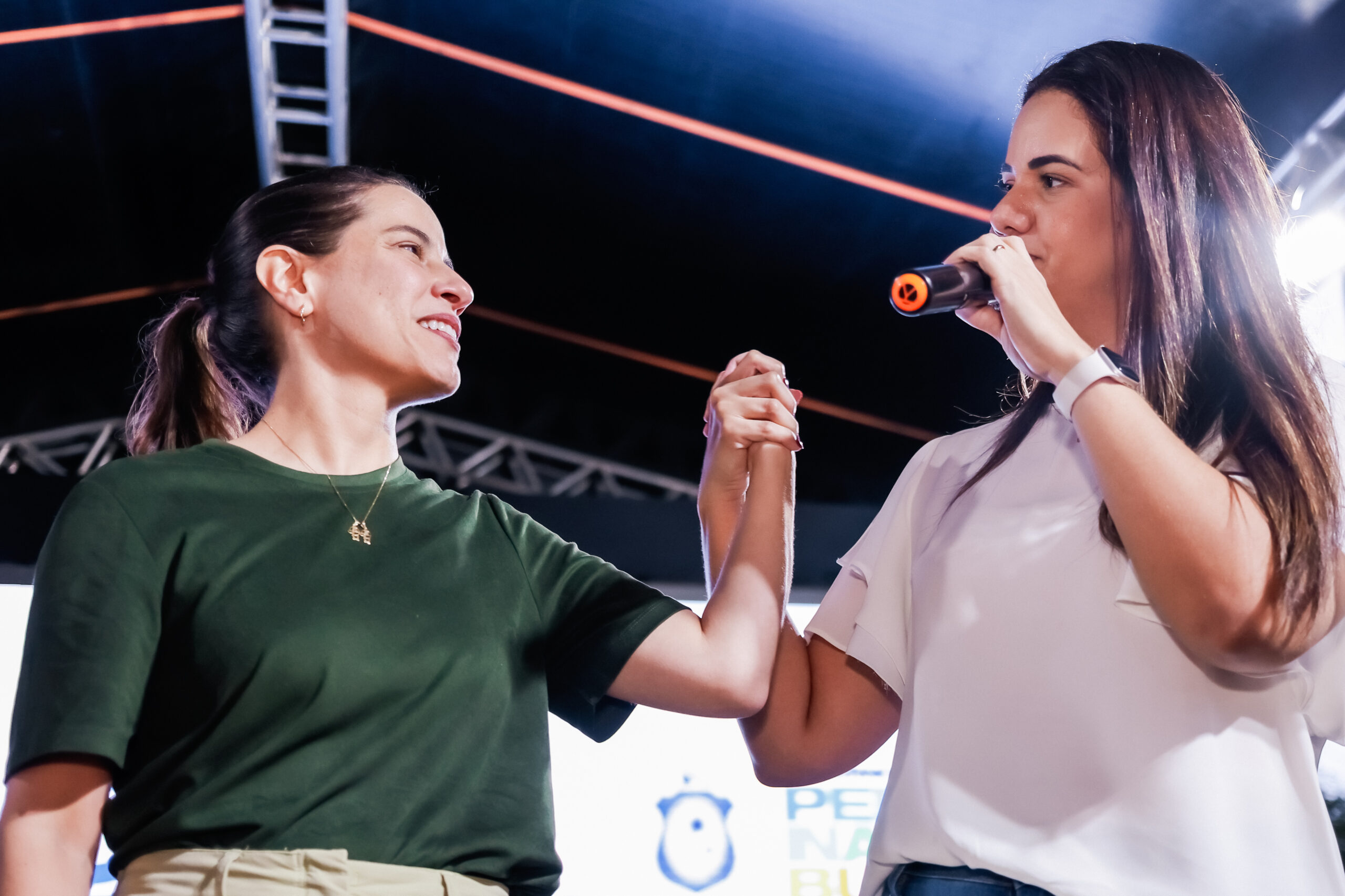 “Quando as mãos se unem, quando os governos se unem, quem ganha é o povo. E é isso que a gente está em busca, de mais articulação para que a nossa cidade ganhe. Estamos aqui hoje entregando a estrada Ligia Gomes, nova em folha. E além disso, assinando a ordem de serviço de mais quatro obras importantíssimas da nossa cidade. É o desenvolvimento que está só começando. Desafios vão estar postos e a gente vai estar aqui para enfrentá-los”, destacou Mirella.