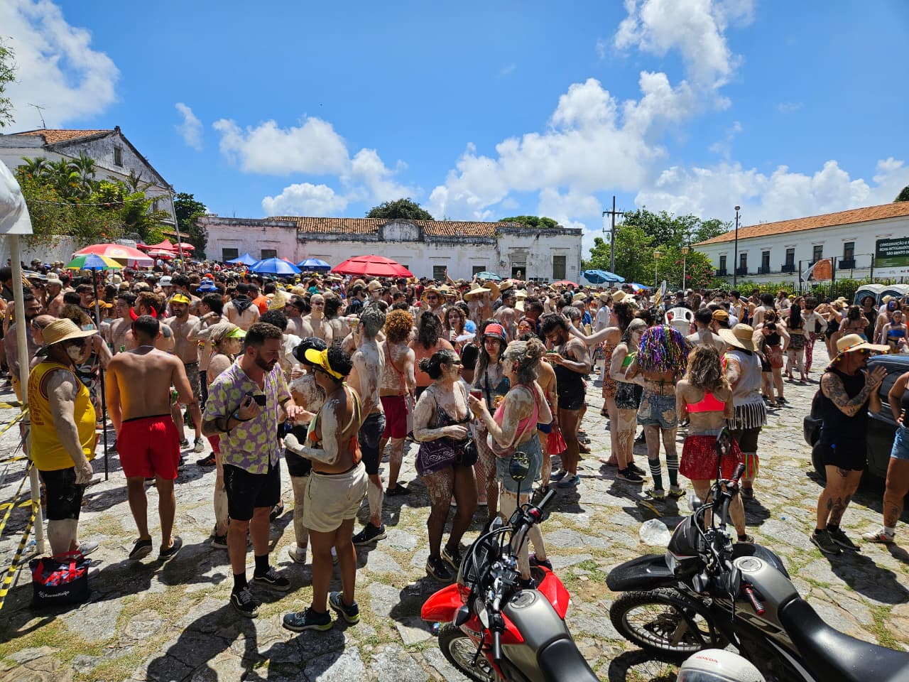 Desde as primeiras horas do sábado de Zé Pereira, uma multidão começou a se concentrar no Pátio do Mosteiro de São Bento para brincar. Grupos vieram de vários lugares para cair na folia. Um dos blocos que chamou a atenção foi o Carnavalesco Mangue Beat. Esbanjando acentuada alegria e melando o povo de lama, a tribo, criada em 1996, faz homenagem ao saudoso músico olindense Chico Science.