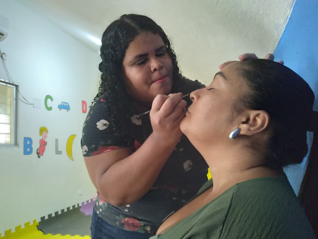 A mesma percepção é compartilhada por Eduarda Nunes, que sonhava em se profissionalizar na área de estética. “É maravilhoso, né? Foi um sonho realizado. Quando os filhos estão na escola, a gente vem pro curso e já começa a pensar em abrir um salãozinho em casa, atender clientes e transformar isso em renda. Já dá pra sentir o início de uma transformação”.