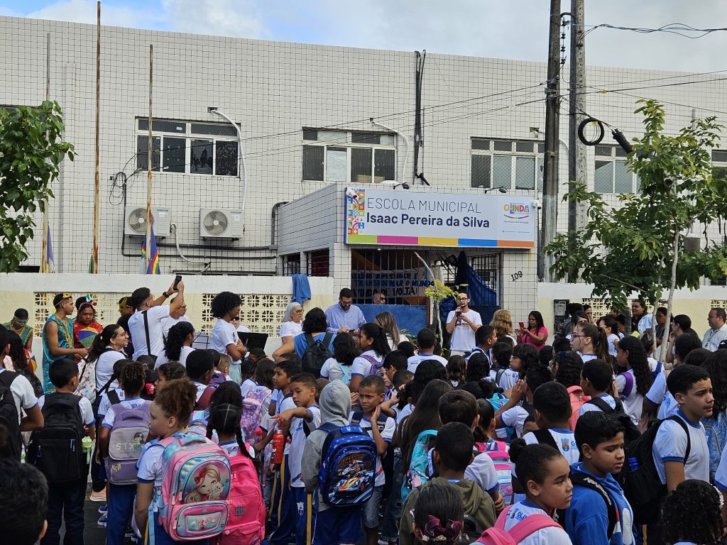 A segunda-feira (25) foi marcada por um clima de entusiasmo e emoção em Jardim Atlântico, em Olinda. A Escola Municipal Isaac Pereira da Silva retomou suas atividades em uma nova sede, localizada na Rua Gastão Vilarim, nº 109, onde antes funcionava a Secretaria de Educação de Olinda. O prédio amplo, com todas as salas climatizadas, mobiliário novo e estrutura moderna, recebeu os estudantes e servidores com sorrisos e expectativa de um futuro educacional mais promissor.