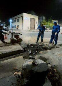 A Secretaria de Gestão Urbana de Olinda, por meio da Executiva de Manutenção Urbana, segue com operação de melhoria no sistema de drenagem e, em seguida, de tapa-buracos na cidade. Durante a noite desta quarta-feira (10), os trabalhos foram concentrados na Avenida Presidente Kennedy, em Peixinhos, e na conclusão do serviço na Avenida Sigismundo Gonçalves. Neste local, uma faixa da via que estava interditada foi liberada, melhorando o tráfego em direção ao Varadouro. As equipes seguiram com a ação durante a madrugada desta quinta-feira (11).