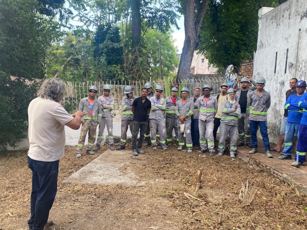 Formação técnica reuniu calceteiros da Prefeitura e da Compesa para alinhar métodos e preservar a identidade do piso histórico da cidade