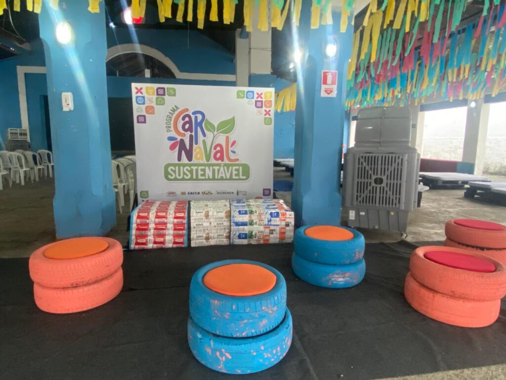 O ponto de coleta de materiais recicláveis está instalado nos Chalés do Carmo, ao lado do Clube Atlântico, e funcionará 24 horas por dia durante todo o Carnaval Sustentável.