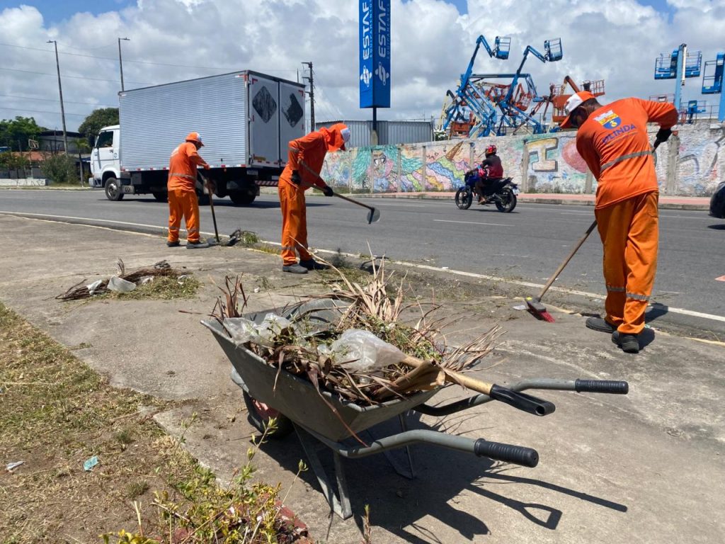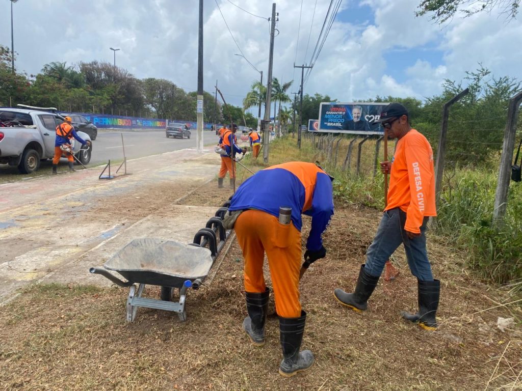 Os serviços incluíram principalmente capinação, pintura de meio-fio e manutenção de vias. Na Avenida Olinda, as equipes da Defesa Civil iniciaram os trabalhos na área da Marinha.