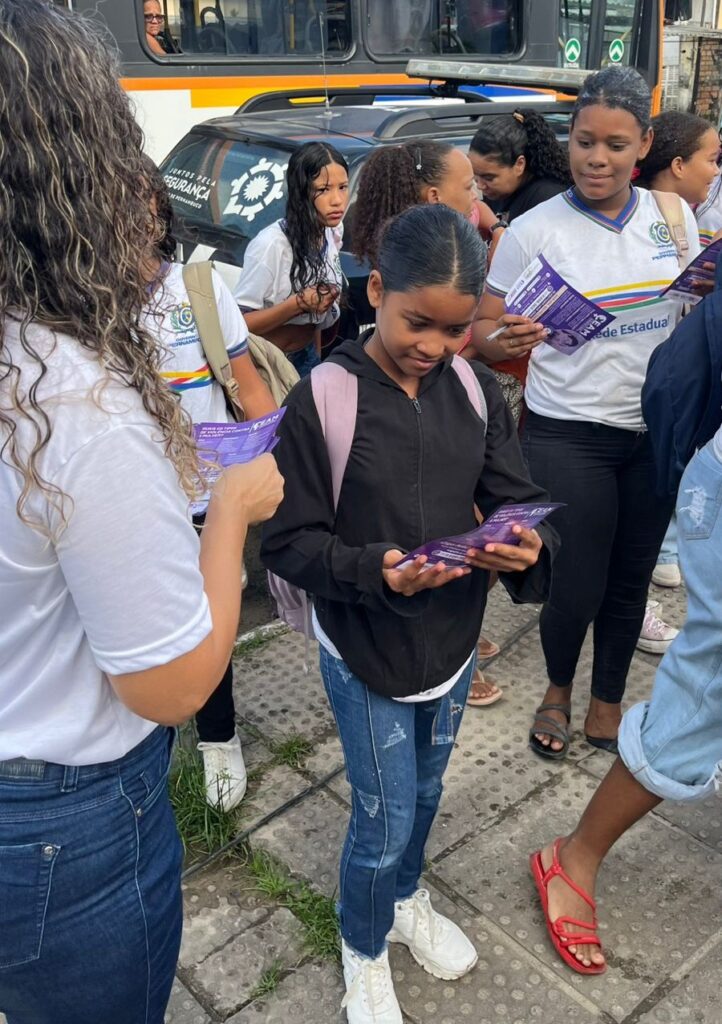 “Foi uma ação conjunta, compartilhada, e abordamos alunos, transeuntes, pais de alunos, profissionais da escola. Entregamos o panfleto do CEAM, da Delegacia da Mulher e contamos com a presença da Patrulha Maria da Penha e da Secretaria de Segurança Cidadã”, destacou.
