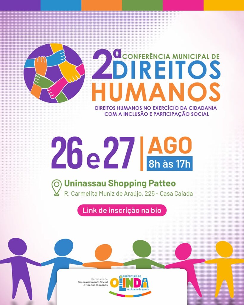 A Prefeitura de Olinda realizará nos dias 26 e 27 de agosto a 2ª Conferência Municipal de Direitos Humanos, aberta a todos os munícipes e sociedade civil.