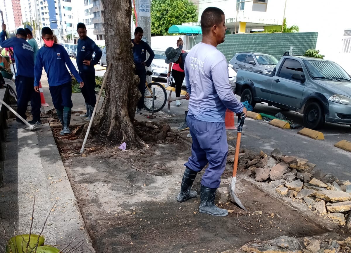 Para garantir a segurança dos pedestres, a Prefeitura realiza a poda e desfrute dos coqueiros de toda extensão da Orla.