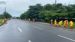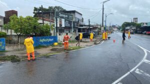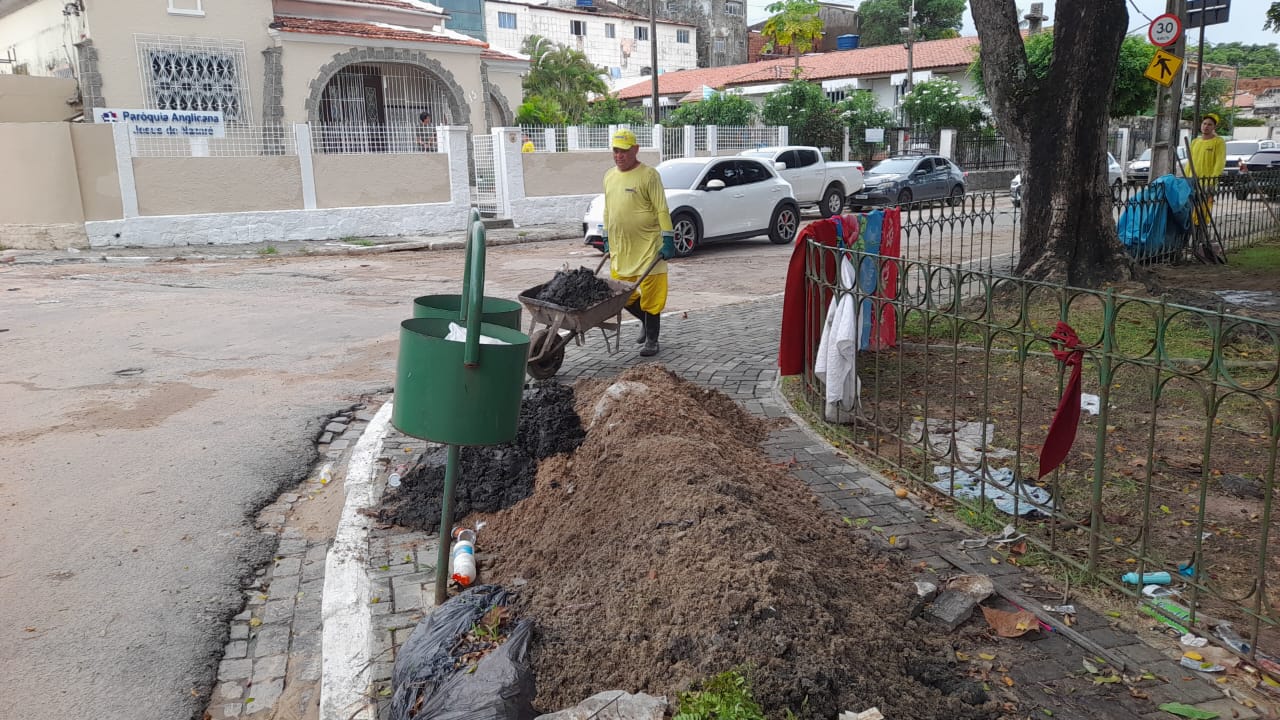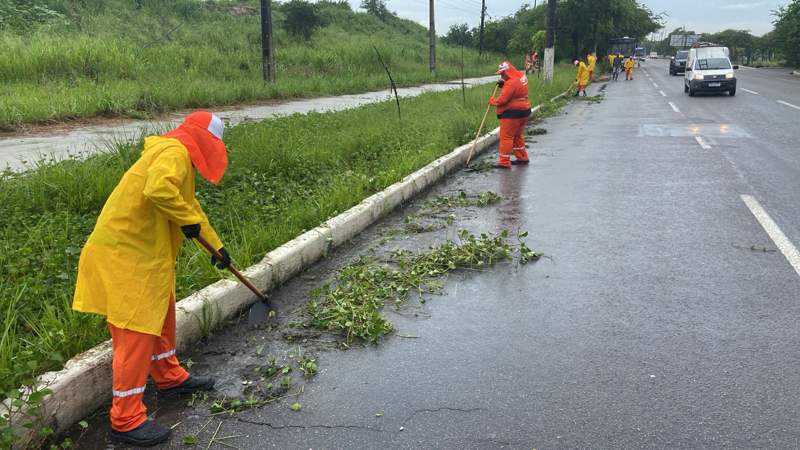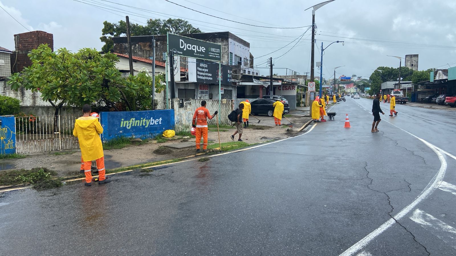 A terça-feira chuvosa foi marcada por muito trabalho das equipes da Secretaria de Gestão Urbana de Olinda, que desde cedo estão nas ruas executando serviços de limpeza, remoção de entulhos, capinação e desobstrução do sistema de drenagem em diversos bairros do município. O efetivo foi distribuído desde a Avenida Olinda, portal de entrada da cidade, até a Avenida Presidente Kennedy, que corta os bairros de Peixinhos, Salgadinho, Vila Popular e Aguazinha.