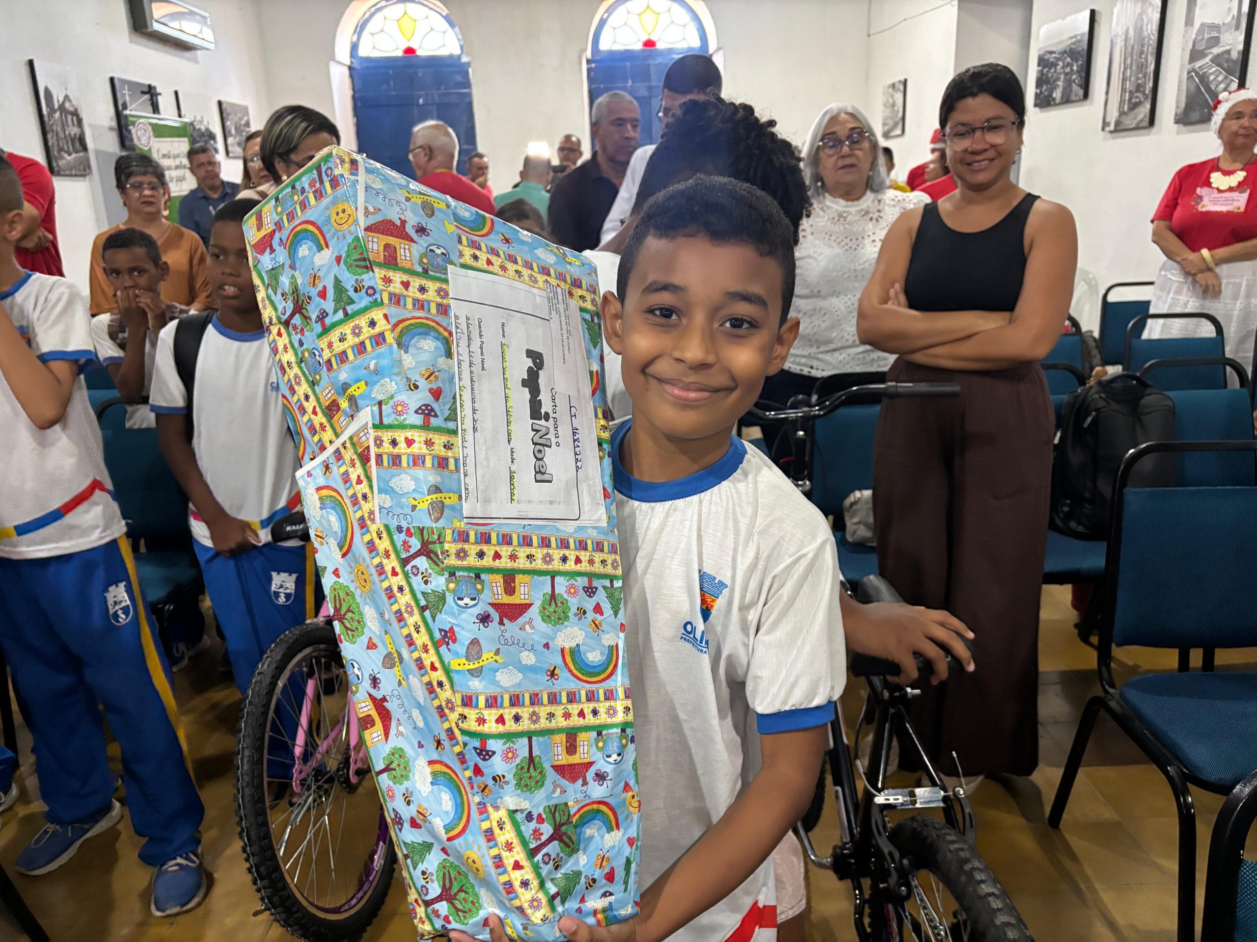A pequena Sther Pereira, de 9 anos, abraçava sua bicicleta como quem abraça um futuro inteiro. “Estou muito feliz! Era tudo o que eu queria e Papai Noel me deu. Vou andar muito na minha rua e me divertir bastante,” disse, com um enorme sorriso.
