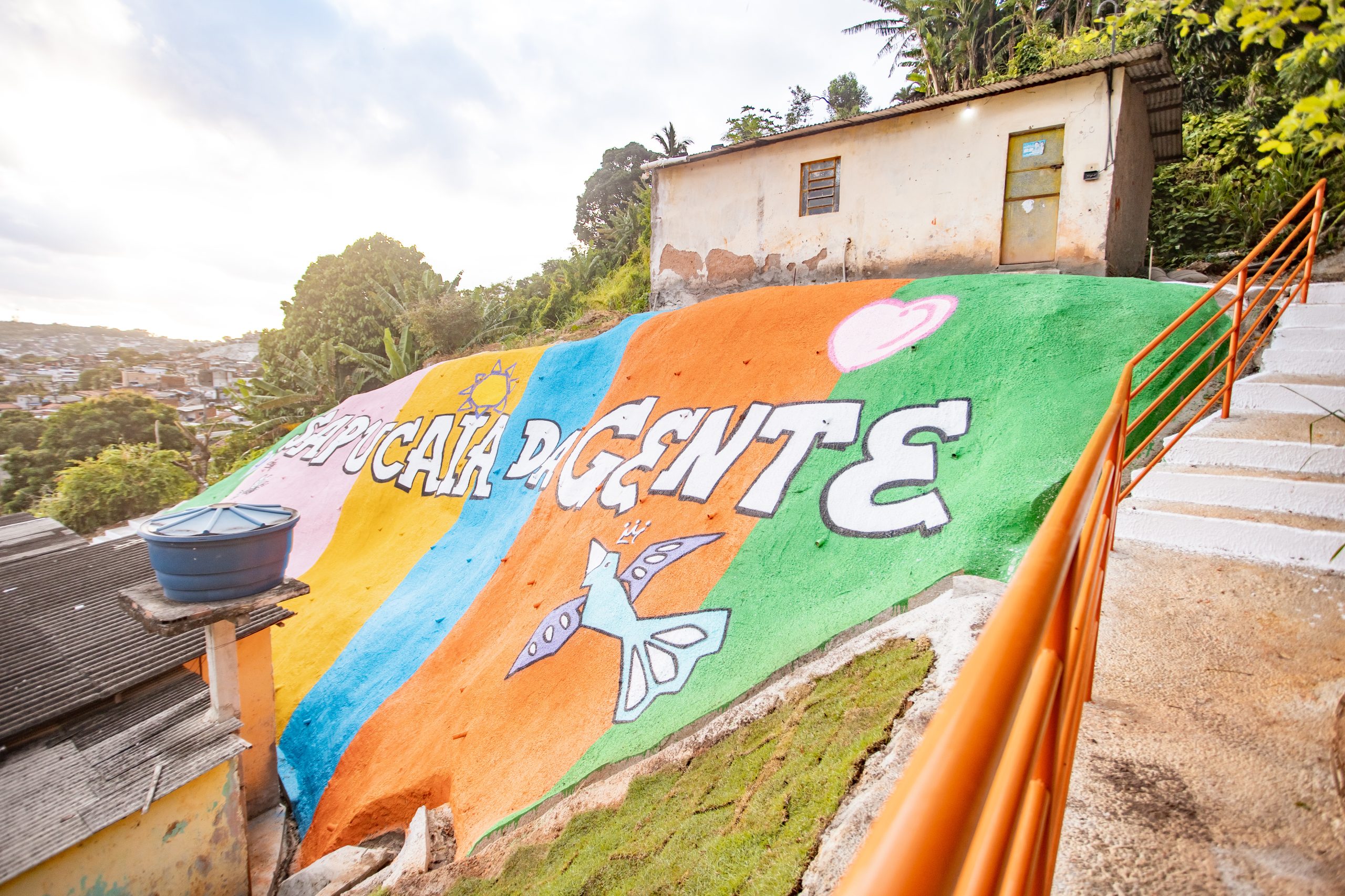 Além da segurança, a obra também priorizou a acessibilidade e a valorização do espaço urbano. Foram instalados 107 metros de corrimão, garantindo mais conforto e segurança no deslocamento dos moradores, especialmente idosos e pessoas com mobilidade reduzida. A grafitagem de toda a encosta, sob o comando do artista Carlos André, deu nova vida ao ambiente, fortalecendo o senso de pertencimento e o orgulho da comunidade.