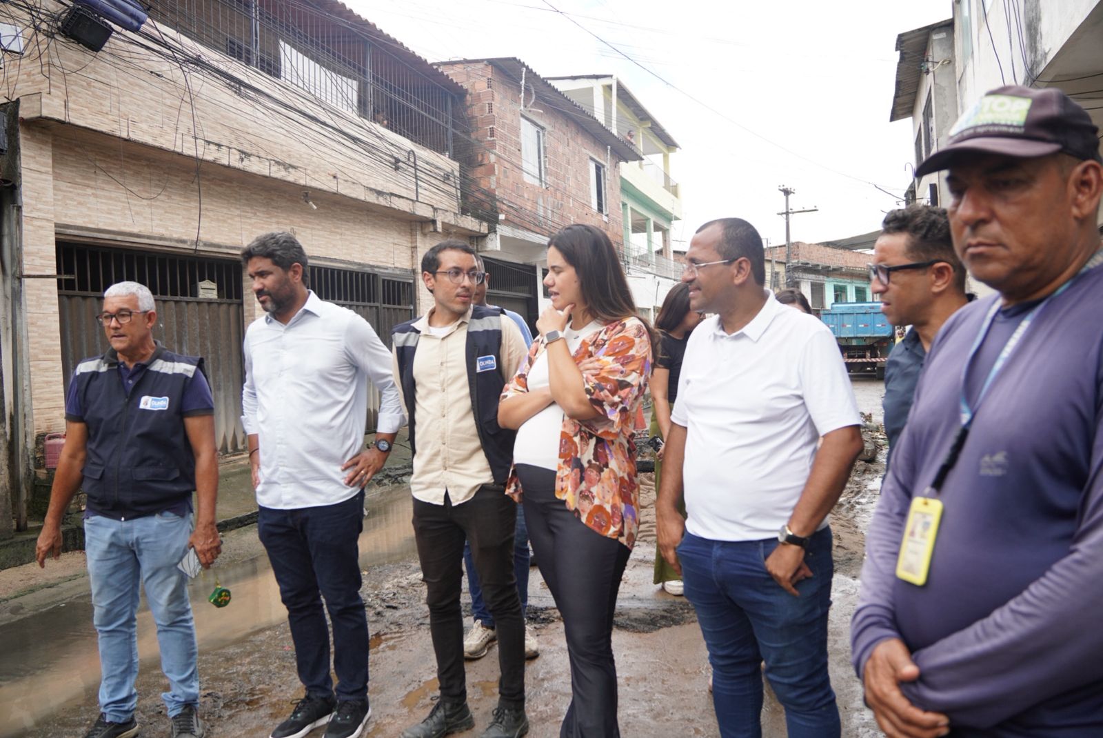 Dentro da agenda de trabalho, a prefeita Mirella também vistoriou os serviços na Rua Francisco Gomes, em Caixa D’Água. No local, a Secretaria de Gestão Urbana realiza a limpeza, desobstrução e recuperação de trechos da rede de drenagem. O objetivo é melhorar o escoamento das águas pluviais, prevenindo alagamentos e reduzindo transtornos, especialmente em períodos de chuvas mais intensas.
