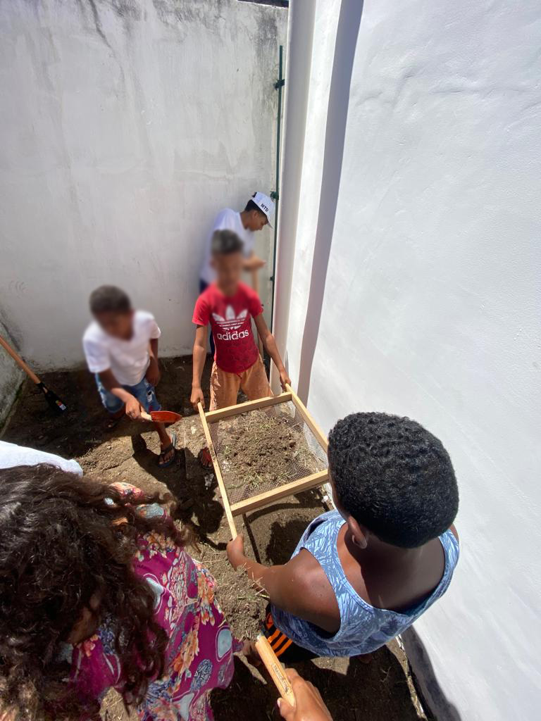 A construção da horta contou com a orientação de um engenheiro agrônomo e professores. O espaço foi montado na área externa da casa, onde as crianças e adolescentes da comunidade local tiveram contato com a terra, hortaliças, além de poder estreitar a relação com a natureza.
