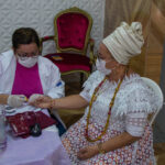 O projeto Saúde nos Terreiros, promovido pela Secretaria de Saúde de Olinda, realizou, nesta terça-feira (12.07), 385 atendimentos no terreiro Ilê Asé Omin Ósún, localizado na Avenida Leopoldina Canuto Melo, 1256, Caixa D’Água. Foram oferecidos testes rápidos para algumas doenças, como Hepatite B e C, vacinação contra a Covid-19, atendimento médico, dentre outros serviços.