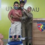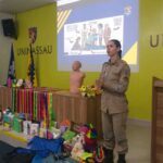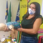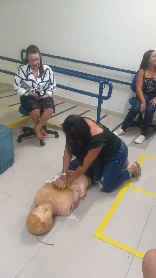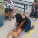 A capacitação foi liderada pela Cabo Géssica e o Aspirante Genuíno, especialistas no atendimento pré-hospitalar (APH), sobre como realizar a respiração, pulsação, desengasgar e o estancamento de sangue.